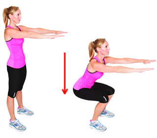 The przysiad (lub zgięcia nóg) pozwalają na ćwiczenie całej dolnej części ciała, wzmacniając mięśnie nóg i pośladków z doskonałymi wynikami.