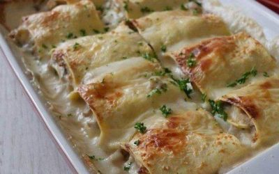Lasagne z szynką i pieczarkami Składniki (na 10 bułek) 5 prostokątów świeżego makaronu 500 g pieczarek 3 plasterki szynki 50…