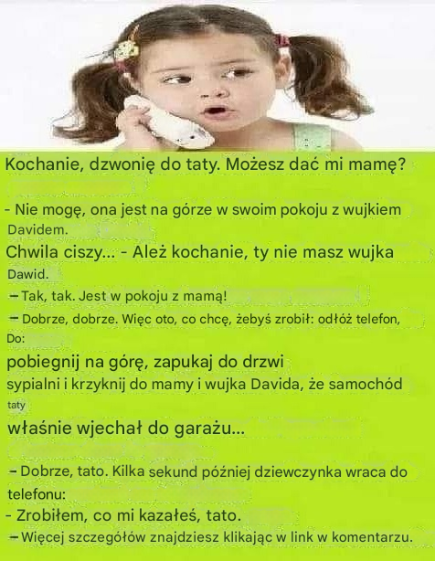 Po kilku sekundach ktoś odebrał. To była mała dziewczynka. Ojciec zapytał: „Cześć kochanie, dzwonię do taty… Możesz dać mi mamę?”.