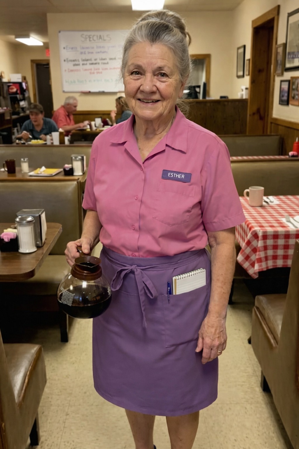 Nazywam się Esther i chociaż mam 72 lata, nadal mam w sobie energię nastolatki, gdy pracuję jako kelnerka w małej restauracji w Teksasie.