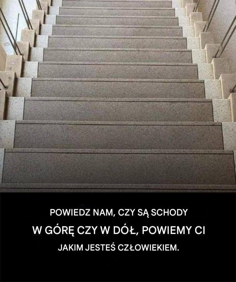 Kto by pomyślał, że prosty obraz może zasiać wątpliwości... i tyle nam powiedzieć? Patrząc na schody, niektórzy mają wrażenie, że idą w górę, inni w dół, jakby nasz umysł wybierał kierunek, zanim jeszcze o tym pomyślimy. A co, gdyby to pierwsze wrażenie ujawniło coś subtelnego, ale bardzo odkrywczego na temat naszego sposobu życia? Poświęć chwilę, by spojrzeć na obraz... i pobaw się nim.