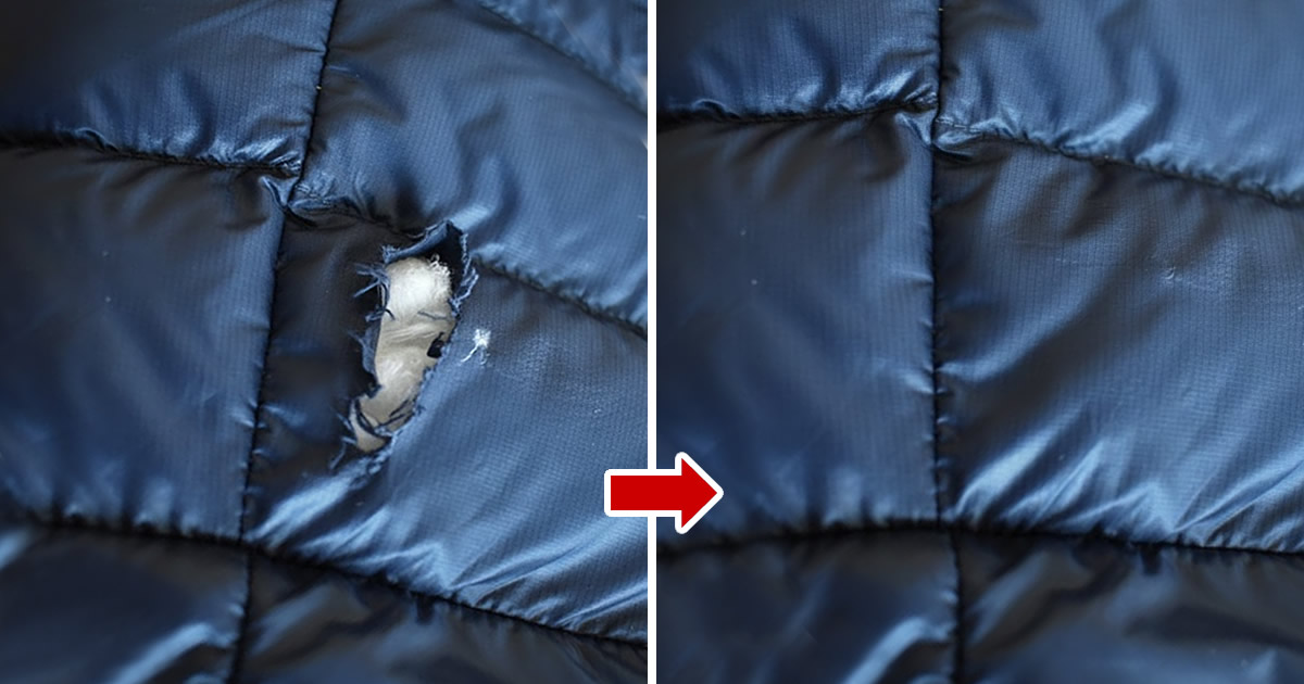 Jeśli otwór jest minimalny, można go zamknąć kilkoma dobrze rozmieszczonymi plamami. Ważne jest, aby pracować od wewnątrz kurtki i utrzymywać nić pod stałym napięciem, aby uniknąć zmarszczek. Przy odrobinie’ uwagi punkt pozostaje praktycznie niewidoczny.